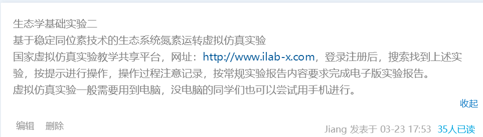 依据生态学的研究对象,计划分别从个体、种群、群落到生态系统层次开展室内、室外以及上机实验。但由于尚为开学,实验室实验无法开展。