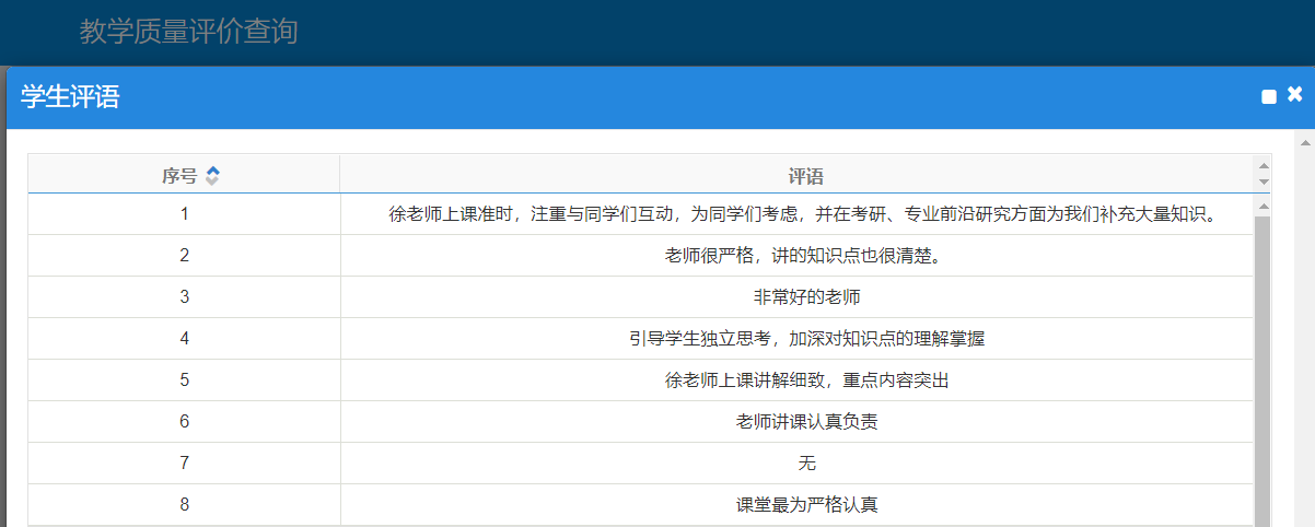 每次课程结束后,会在QQ群或者私下交流的方式解答学生在理论和实验课程遇到的问题。从学生对理论和实验课程评教留言来看,整体教学效果较好,但是也存在着课程中遇到的一些问题,需要在后续讲课中进行改进。