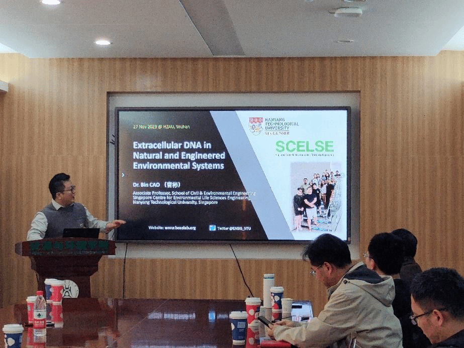 (通讯员:李锦 吴一超)11月27日,应我院蔡鹏教授的邀请,新加坡南洋理工大学的曹彬教授做客学院”生态环境与绿色发展高端论坛“,分享课题团队在微生物作为”环境工程师“及相关生物膜与胞外DNA在自然与环境工程技术中的研究成果。