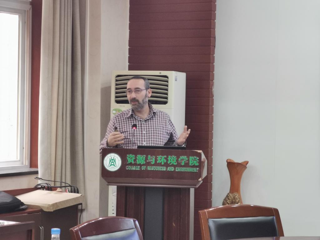 报告开始前,胡荣桂教授代表学院对三位专家的到来表示热烈欢迎。随后,Latif Kalin教授做了题为“Modeling Environmental Change at Multiple Scales”报告,主要讲述了在多重尺度下通过土地利用和径流的建模模拟环境变化、流域尺度水文和水动力模拟、湿地养分循环等。潘淑芬教授带来了题为“Integrating Big Data and Earth Observation with Ecosystem Model for Assessing Ecosystem to Global Change”的报告,阐述了应用空间大数据、卫星观测和生态模型,评估和预测自然-人类耦合下全球环境及其变化。最后,Christopher George Burton博士给大家带来报告“Development of Methods and Metrics for Better Understanding Coupled Human-Environmental Characteristics of Resilience to Climate-Related Natural Hazards and Disasters”,报告主要包括人与自然的相互作用、自然灾害、灾害恢复力、建模风险与脆弱性等内容。三场报告所带来的“爆炸性”信息令在场的师生深深陶醉其中。