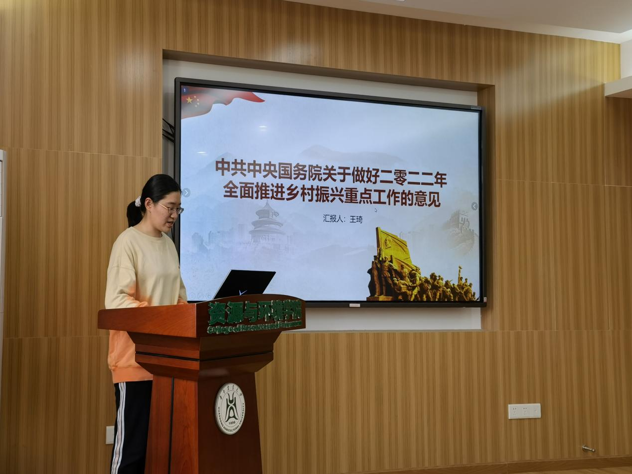 之后,王琦同志领学了中共中央国务院关于做好二零二二年全面推进乡村振兴重点工作的意见。她介绍了意见中明确的两条底线任务和 三方面重点工作,以及推动实现“两新”,同时总结了意见的重要意义。她谈到:致天下之治者在人才,成天下之才者在教化,人才振兴实施正确方向是实现乡村稳、农业兴的重要因素。我们作为青年党员,作为英国365上市公司的一名学生,要坚持以习近平新时代中国特色社会主义思想为指导,深入贯彻党的十九大和十九届历次全会精神,努力提高自身综合素质,为乡村振兴保驾护航。