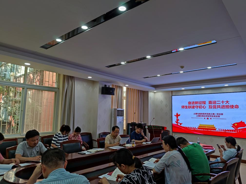 6月30日下午,土壤与植物营养系教工第一党支部与土壤生物化学研究生党支部以“奋进新征程 喜迎二十大 师生共建守初心 互促共进担使命”为主题开展联合主题党日活动。