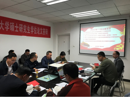 党支部书记肖乃东围绕中共中央关于认真学习宣传贯彻党的二十大精神的决定、习近平总书记在中共中央政治局第一次集体学习时的讲话以及中国共产党第二十次全国代表大会关于《中国共产党章程(修正案)》的决议等内容向大家进行了传达和学习分享。