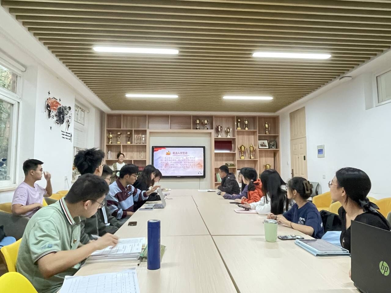 10月24日下午,我院本科生第一党支部在主楼240会议室开展10月主题党日活动。支部组织委员毛欣悦主持会议,全体支部党员参与会议,并畅谈了学习体会与思考。