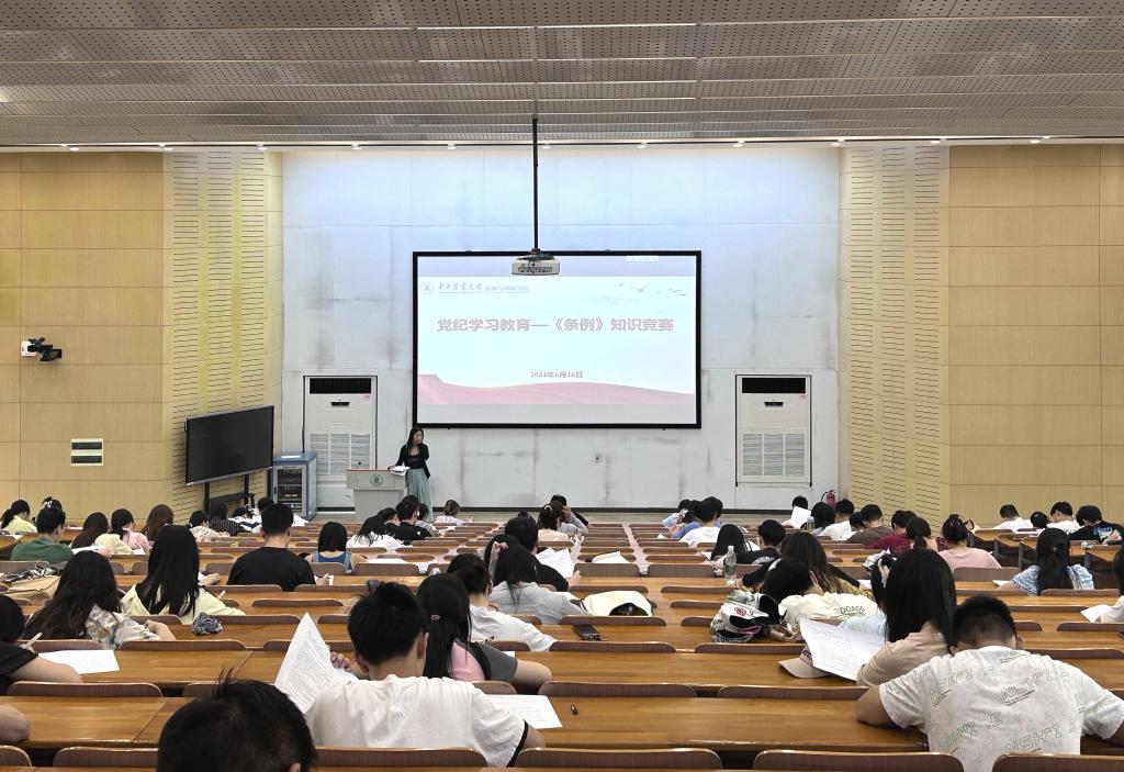 为深入贯彻习近平新时代中国特色社会主义思想和党的二十大精神,进一步加强对党的纪律建设重要性和忽视党纪、违反党纪问题危害性的认识,推动广大党员、干部强化遵守纪律的自觉,以严明的纪律确保全党坚定自觉同以习近平同志为核心的党中央保持高度一致,统一思想、统一行动,知行知止、令行禁止,形成推进中国式现代化的强大动力和合力。我院于6月16日上午在三教S2报告厅举行《中国共产党纪律处分条例》知识竞赛,教育引导学生党员和入党积极分子强化规矩意识、严守纪律底线。