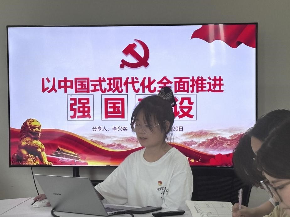 随后,李兴奕同志带领大家学习了习近平总书记在全国科技大会、国家科学技术奖励大会、两院院士大会上的重要讲话。习近平总书记谈到:科技兴则民族兴,科技强则国家强。中国科技日后发展要不断深化体制改革,充分激发科技人员积极性、主动性、创造性,有力推进科技自立自强,为早日实现科技强国努力奋斗。在学习过后,苗芳源同志结合自身经历,分享了她对未来学业规划的思考。她表示,习近平总书记的讲话为她指明了学术发展的方向,她将致力于新能源领域的科技创新,为实现“双碳”目标贡献自己的力量。