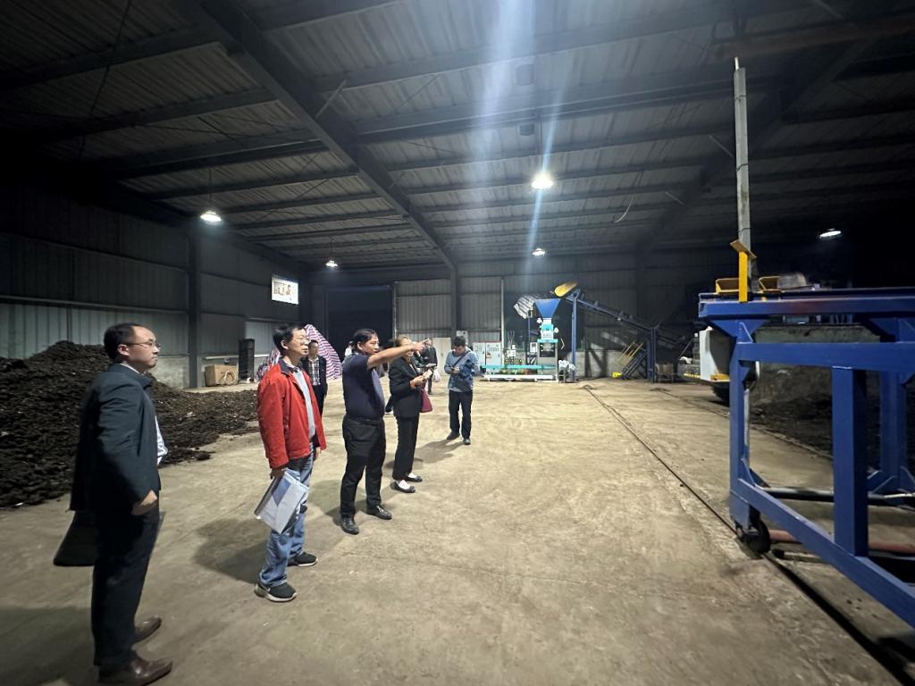 调研组一行随后来到湖北省农科院鄂州基地,省农科院土肥研究所赵书军研究员简要介绍了基地的相关情况,并带领调研组一行参观了基地有机物料生产车间,了解了从稻田秸秆到腐熟发酵再到养分还田的整个循环操作过程。