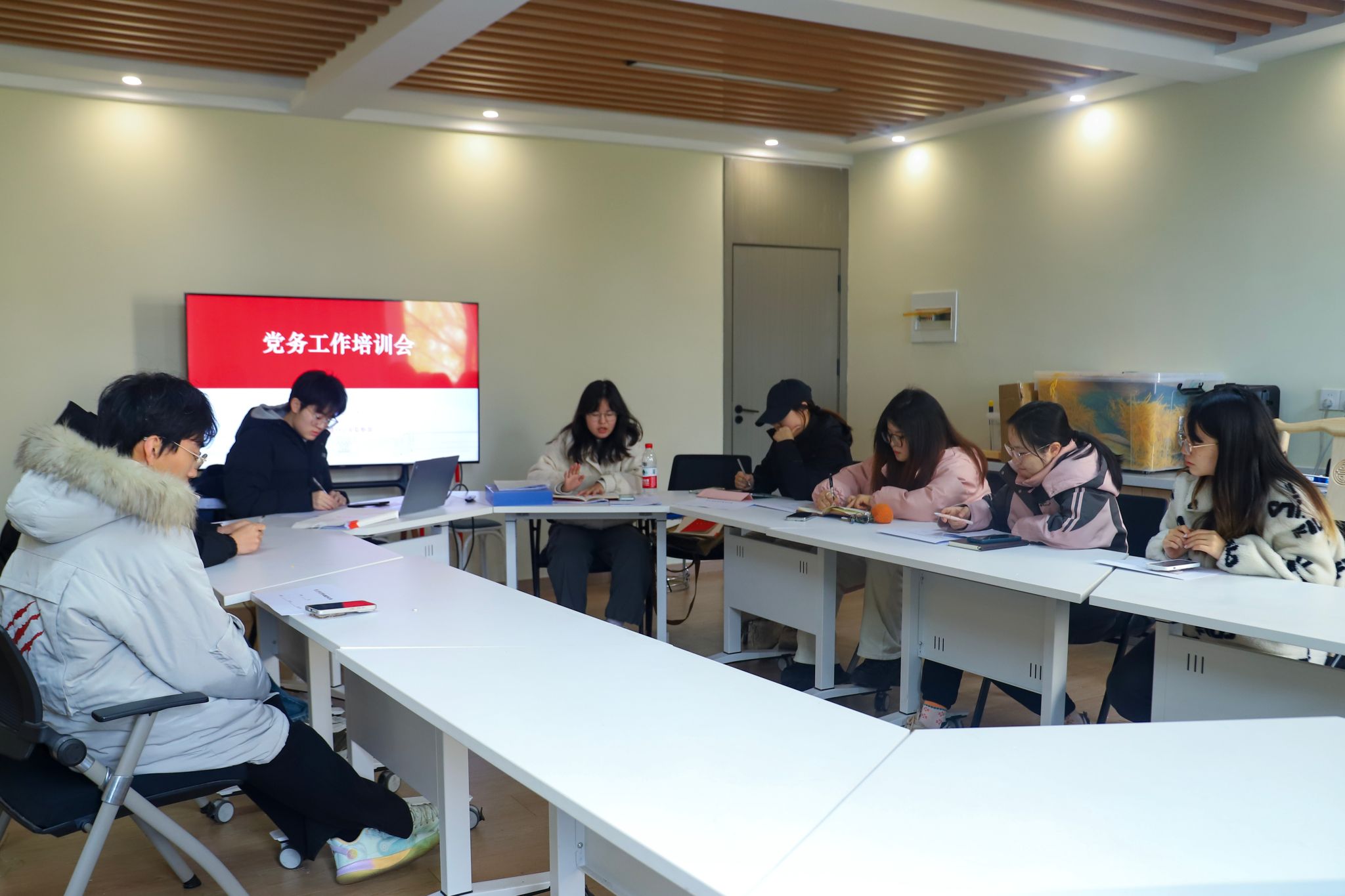 12月19日中午,我院于荟园八栋一站式学生社区h8-300举行党务工作培训会,各党支部支委参会,党建监察部张心怡主持会议,辅导员徐玲莉对本科生党支部做培训。