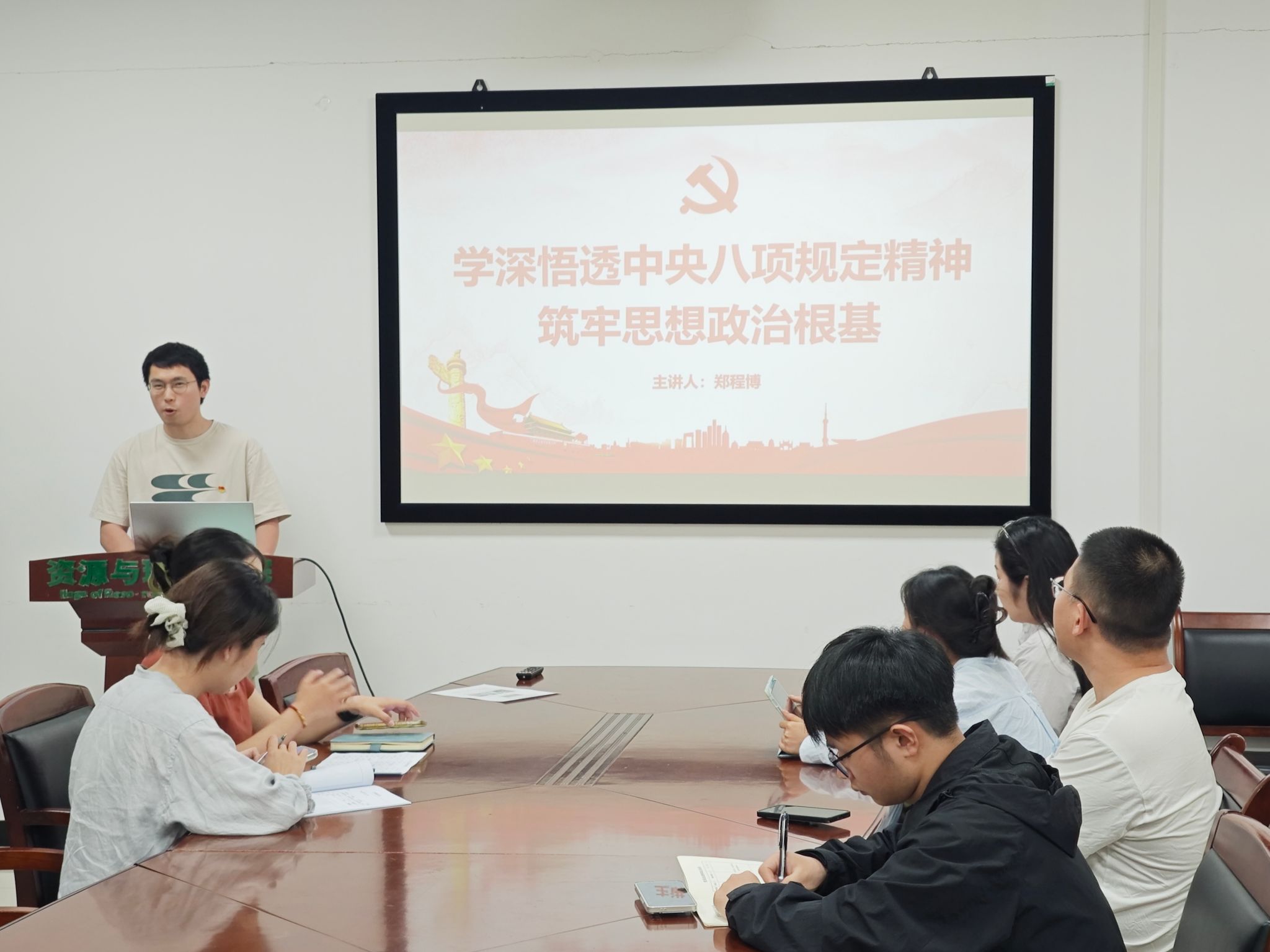 5月27日,水土保持研究生第二党支部在资环楼515会议室开展五月主题党日活动,校研究生宣讲团成员郑程博进行深入贯彻中央八项规定精神学习教育主题宣讲,支部党员代表进行科研经验分享,支部党建指导老师张晓明参加学习活动。