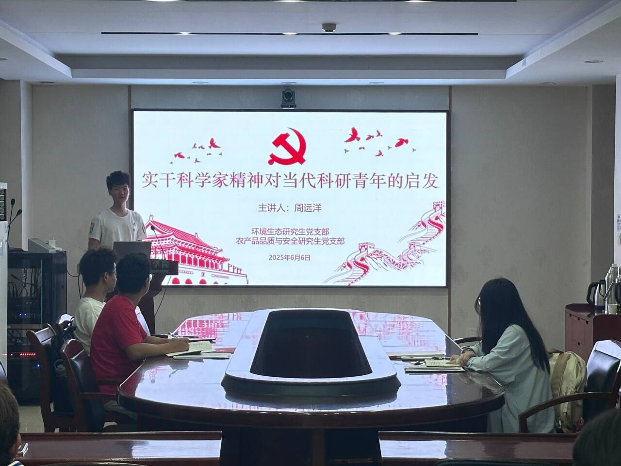 6月6日,环境生态研究生党支部和农产品品质与安全研究生党支部在资环楼204会议室联合开展学习活动,校研究生宣讲团成员周远洋受邀作“实干科学家精神对当代科研青年的启发”专题宣讲。