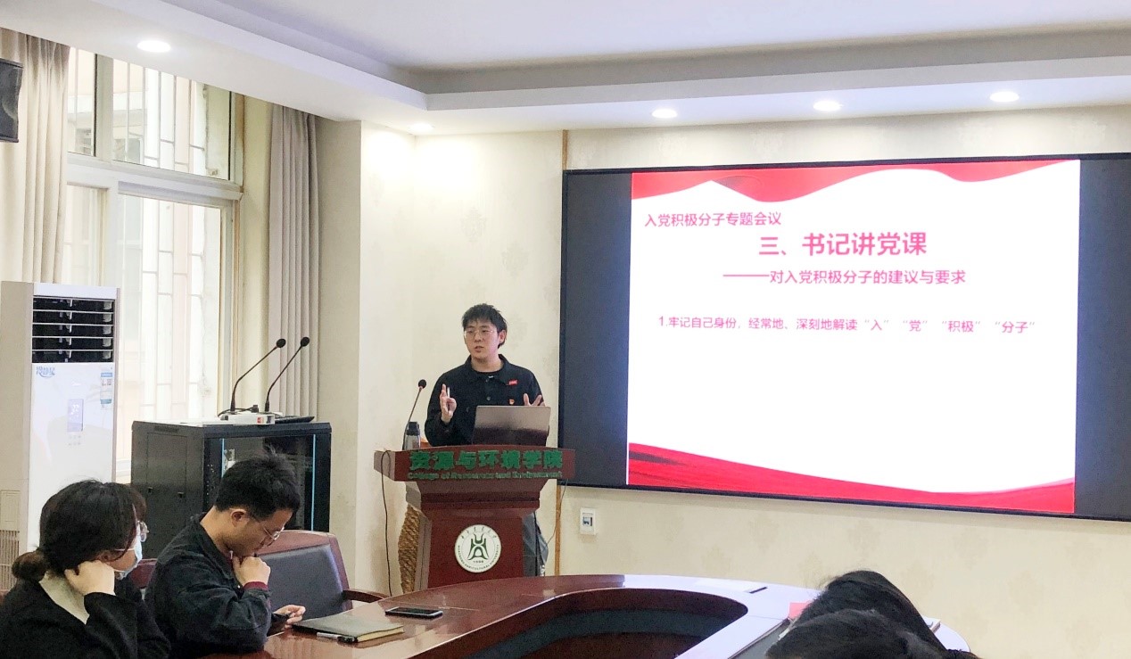 (通讯员 彭珏)3月14日,我院水土保持研究生第一党支部召开入党积极分子培训会议,部分优秀入党积极分子做汇报展示,全体党员参与讨论。支部书记郭振勇同志主持会议,并上党课。