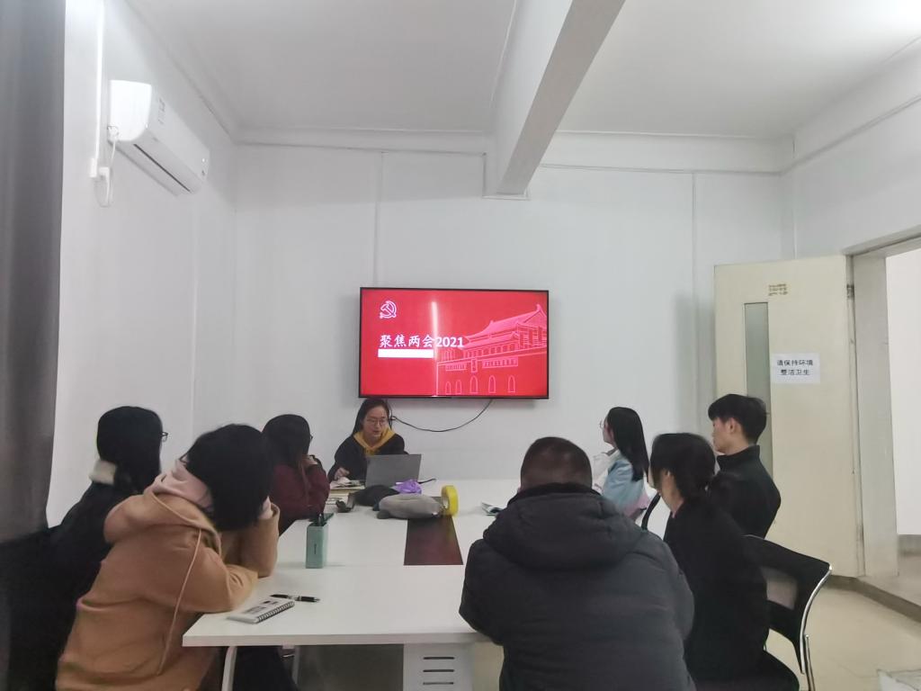 今年的两会也是大家的讨论焦点,徐薇同志给大家分享了代表们关于民生、环保、科技等方面的提议,并建议青年党员多关注时政,积极学习重要的文件以及会议精神,关注国家每年规划与远景目标,并将自身发展与时代背景相结合。