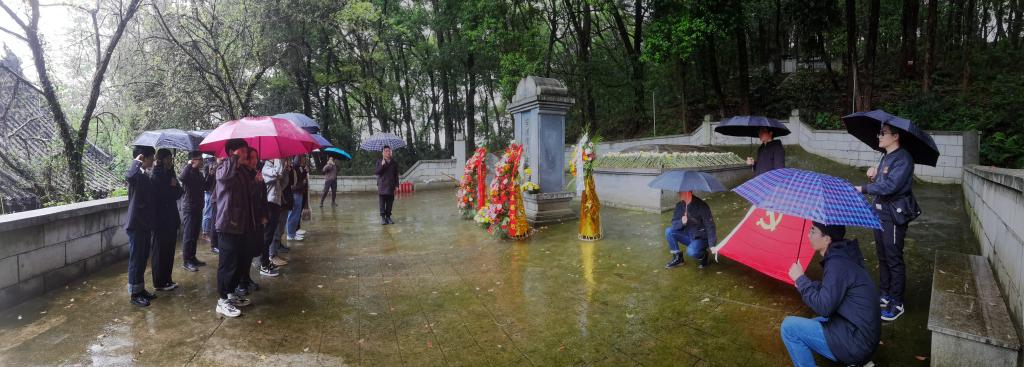 伏虎山烈士陵园位于洪山区卓刀泉公园后的伏虎山,清明时节雨纷纷,路上行人欲断魂,一路绵延不绝的小雨,全体党员以及入党积极分子在每位烈士墓地之前长久伫立。党员代表沈飞龙同志向支部成员依次讲述伏虎山烈士陵园中辛亥首义烈士墓、抗日将军烈士墓、辛亥首义志士墓等革命烈士的丰功伟绩。
