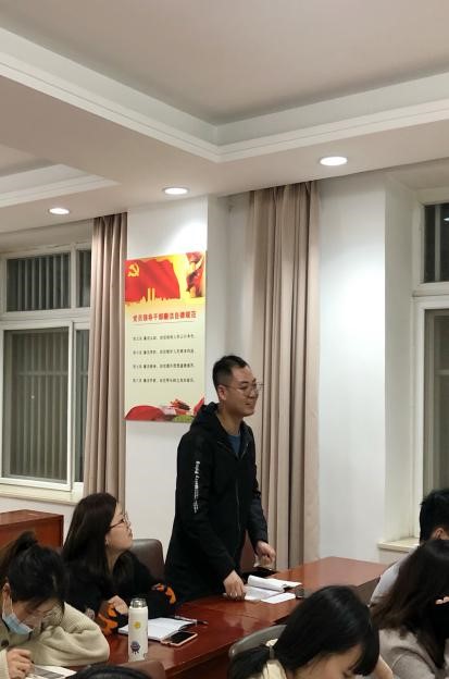 会议第二项,李念同志领学全国脱贫攻坚总结表彰大会精神和新冠肺炎疫情防控阻击战榜样专题,并带领全体成员观看了《榜样5》专题节目,全体支部成员进行交流讨论。刘政同学表示,“安得广厦千万间,大庇天下寒士俱欢颜。”反贫困是古今中外治理国政的一件大事,是我们党的重要使命。当代研究生要立足定位,将所学所感投入到学习生活的实践之中,服务同学、奉献社会,认真学习科学文化知识,做好科研工作,朝着成为社会主义合格建设者和可靠接班人的目标努力奋斗。