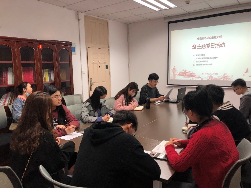 3月25日,我院环境生态研究生党支部在主楼234举行以“学百年党史,讲红色故事”为主题的3月主题党日活动,支部书记李文浩同志主持会议,党支部党员及部分入党积极分子参加学习。