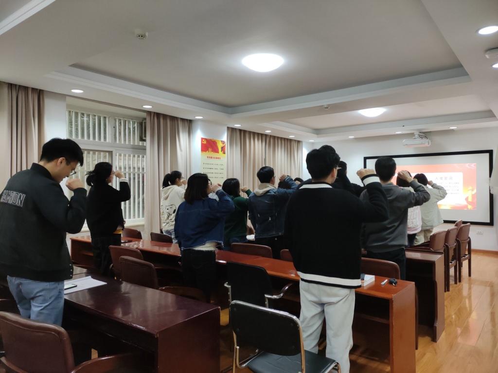 会议结束前全体人员一起重温了入党誓词。