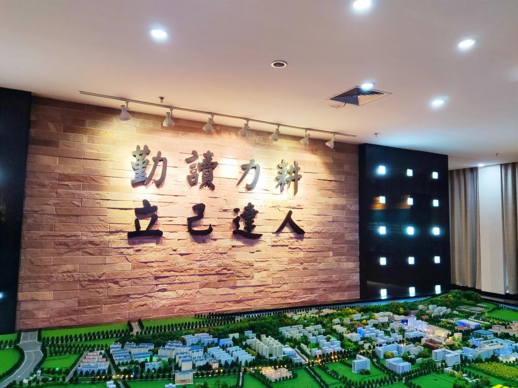 走进校史馆,左右门柱上悬挂着湖北省农务学堂创始人张之洞写的楹联:凡民俊秀皆入学,天下大利必归农,表达着农业振兴要靠教育要靠人才的思想。进入大厅,正面映入眼帘的是红砂岩大型屏风墙,勤读力耕,立己达人八个大字镶刻于上、熠熠生辉。屏风墙前,一套校园模型将美丽校园生动直观地展现在大家面前,整个大厅在屏风墙和模型烘托下,显得格外大气、雄浑。