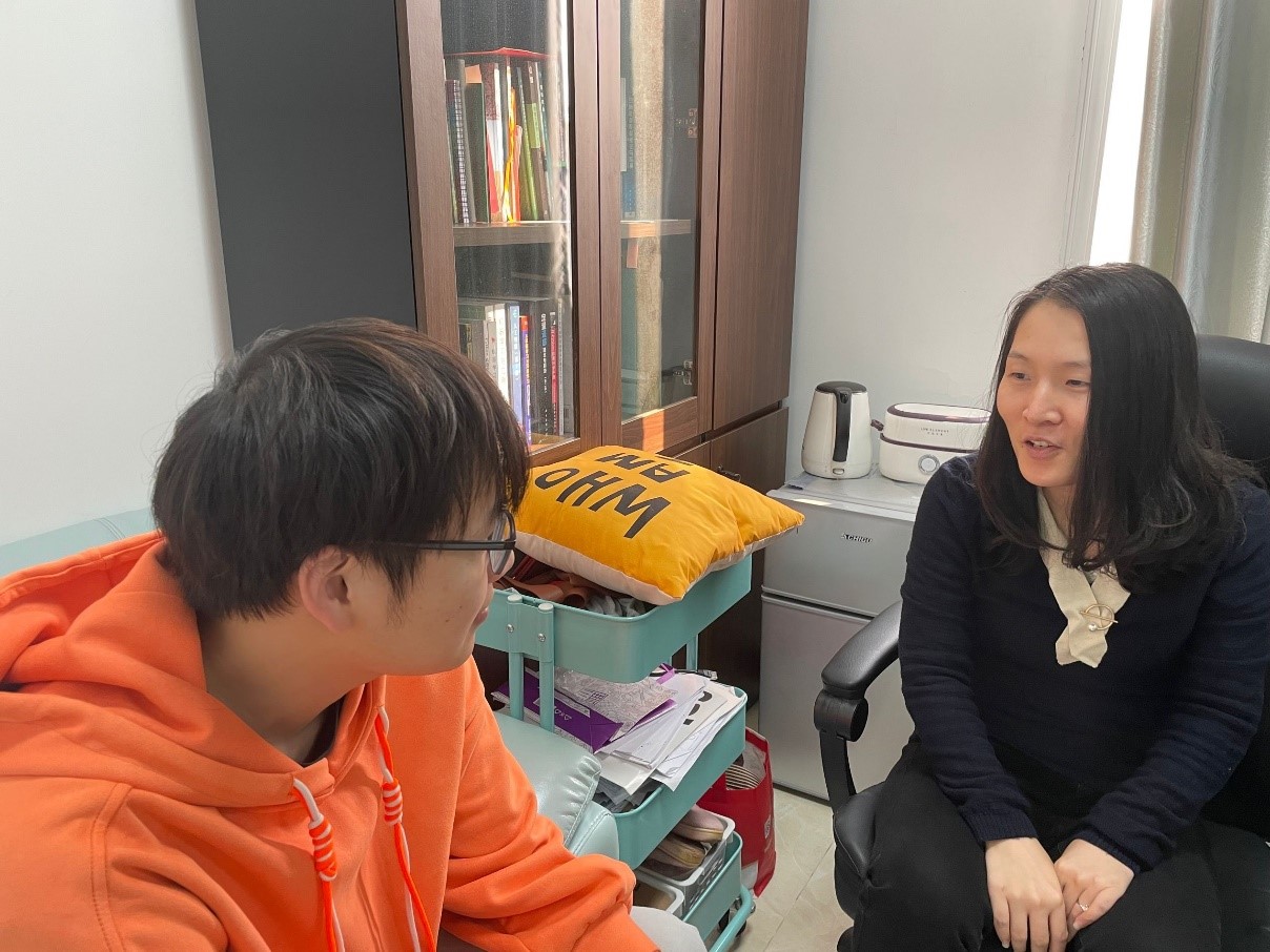 邵帅、周龙飞、李明龙等人同导师杨勇进行了深入交流。杨勇以自己的入党经历和初衷为例,强调了党员应当牢记自己的使命。导师褚琳给张紫荆、刘明宇、刘婷婷等入党积极分子分享了她在疫情期间主动承担党员义务,在第一线积极抗疫的经历,以实际行动号召入党积极分子端正入党动机,不忘初心,不辱使命。