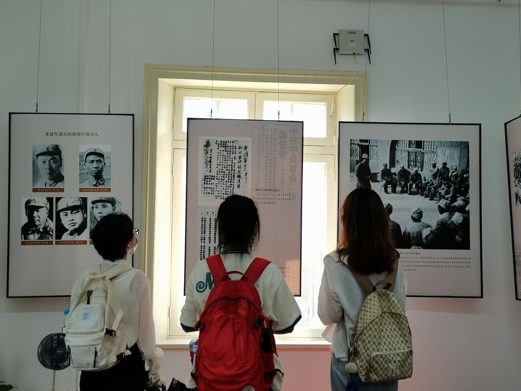 踏入汉口新四军军部旧址纪念馆,首先映入眼帘的就是翻修后的白色墙面和涂上黄漆的木制窗户,透露着朴素和沧桑。馆内有200多幅原始照片和30余件珍贵文物,见证了新四军军部在武汉诞生的历史,真实展现了新四军的光辉历程。小组成员仔细观看照片以及新四军用过的绑腿、枪支、地雷等文物,了解新四军在抗战时期做出的贡献,感受先烈们为了国家抛头颅洒热血的无私精神,心中感慨万千,敬佩之情油然而生。成员马祯说道:“先辈们为了国家牺牲了自己的安稳乃至生命,我们一定要好好珍惜这来之不易的和平。”