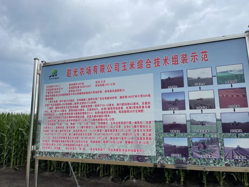在农场管理员张元(化名)的讲解下,我们了解到赵光农场于2020年按照北安分公司所提出的“北安模式”进行了合理调整,其中“541”种植比例的实施稳定了大豆和玉米的种植比例。同时,控牢生产前端节本增效,以“同质优价、同价优质、服务到位”为切入点,推进农业投入品统供,以质量、价格、服务优势稳定市场占有率。