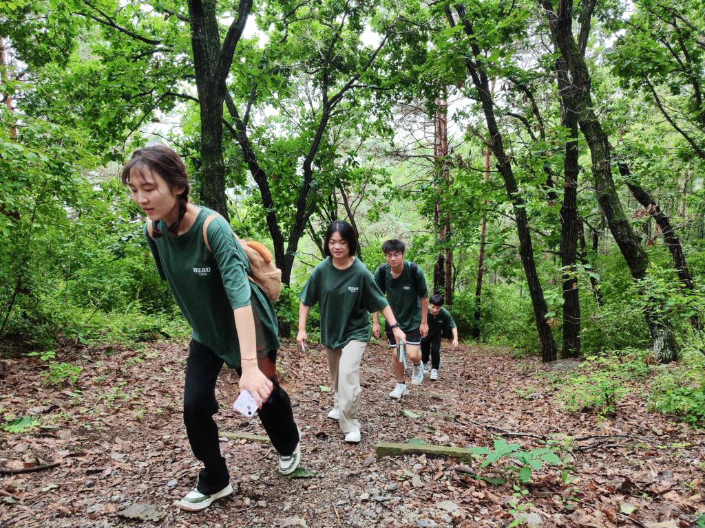 用脚步追忆岁月,用行动丈量历史,730日下午,实践团成员重走垦荒路体悟初心,汲取奋进力量。面对团队成员对于垦荒路位于山上的疑惑,讲解员张东升说道:山下丛林非常浓密,且有很多沼泽,对比之下山上更容易行动和开垦。当年这里是棒打狍子瓢舀鱼,野鸡飞到饭锅里,实践团成员一路走,讲解员一路讲,带领大家见证垦荒队员伐木运输、开垦荒地、建防空洞、恢复植被等事迹。