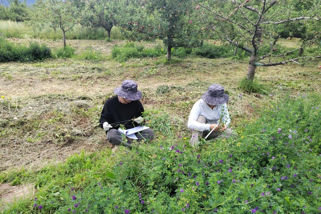 西藏林芝市位于雅鲁藏布江中下游,素有“西藏江南”之称,因其优越的地理位置和气候条件,成为了西藏重要的水果生产基地之一。7月25日至8月2日,实践团抵达林芝市巴宜区苹果园,通过走访当地果农,统计果园水果产量和施肥情况。此外,果园专家还向实践团详细介绍了黑砖苹果的生长周期、果园的日常维护的知识,例如在什么阶段施肥、什么阶段打药、什么阶段剪枝、什么阶段除草等都进行了详细的讲解。在实践过程中,实践团成员还进行了牧草性状调查、土壤碳氮磷元素和植物多样性的调查,并深入基层进行实地调研,初步探究当地土壤是否存在肥力低下、土壤侵蚀等问题。