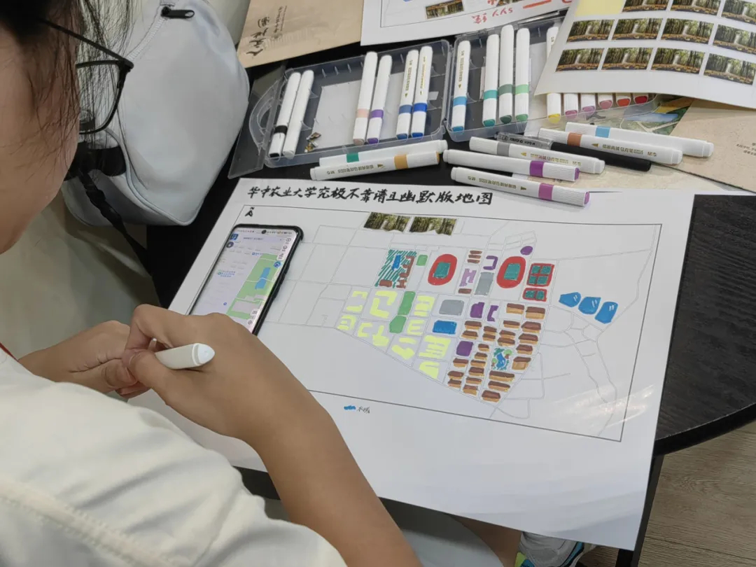 下午16点,为了使同学们更快地了解熟悉校园,“狮山印迹——校园地图制图体验”活动在一站式学生社区H8-300举行。“猜猜这是什么图?”辅导员程子豪首先为大家介绍了地图的相关知识,并讲解了如何制作一份地图图。在场的同学们跃跃欲试,利用彩笔绘出了自己心中独一无二的大学地图。最后大家拿着自己的作品合影留恋。