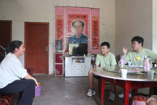 从家长那儿我们了解到,家里的经济来源主要依靠她在村委会上班和孩子爸爸开挖掘机包工程。但由于生意不景气,孩子爸爸不得不选择外出务工,孩子婶婶对我们说:“当地居民的家庭收入情况都差不多,基本上孩子父母都在外地务工。”团队成员给家长分析了孩子在学校的表现和学习情况,也提出了一些改善学习状况的建议。
