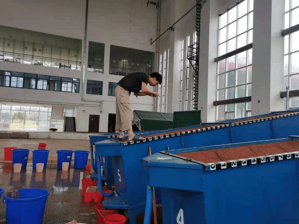 “我们这个实验是冲刷实验,因此无论是冲刷前、冲刷中、冲刷后,都是要有大量的工作需要去完成的。”从冲刷实验开始前的拍照、取土、写密封袋、填写当天的实验表格、烘干称量滤纸、清洁使用容器,到冲刷过程中的接样、测水力特性指标、记录数据、观察草沟演变过程、记录实验问题,再到冲刷后的径流体积量测、样品装瓶、滴酸冷藏等,他都一丝不苟地加以完成;即使回到寝室,他还要负责当天数据的登记及核对。上午9点到晚上12点成为常态,但他依然苦中作乐,在一次次实验中磨练自己的意志,提高个人的科研能力。