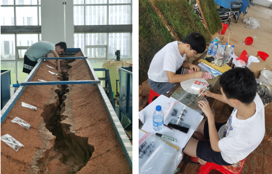 “最让我影响深刻和痛苦的便是每天都要爬到土槽上面去拍照:因数据提取需要,我必须站在上面,以垂直地表的角度较好地完成对地表的拍摄,在这过程中手要稳,心要静。不过尝试次数多了以后也没那么害怕,反而有一种成就感。”从7月23日实验开始,到8月27日实验结束,他就在这一次次的拍摄中领悟科研,从无知走向有知,从害怕走向勇敢,从动摇走向坚毅。