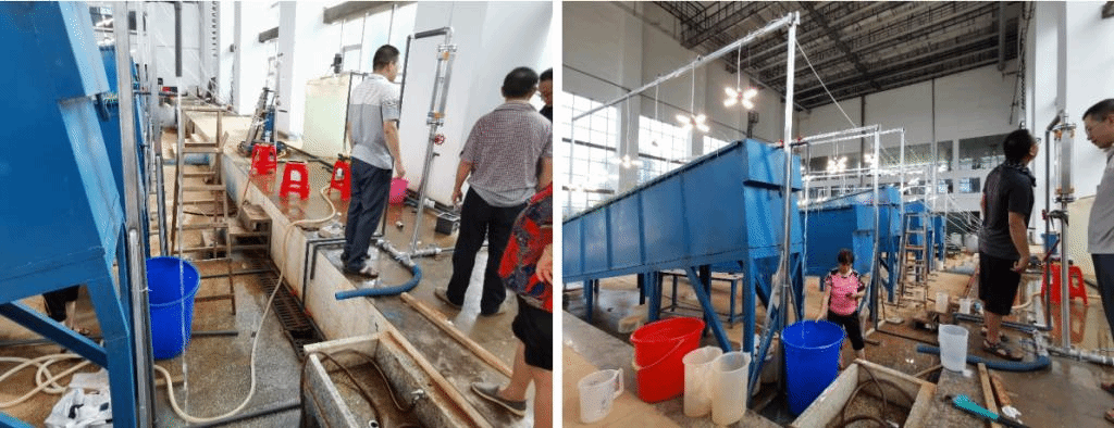 “我买的就是期末结束后一天的火车票,就是为了能够尽早接触实验,体验科研氛围,参与试验过程。”李军同学笑着说。刚到实习地点,他草草地收拾了行李后就直接前往人工降雨大厅,与科研人员一起着手实验开始前的一系列准备工作:熟悉整个实验流程,了解项目内容及意义,探讨实验细化过程,制作现场记录表及具体研究方案等。在熟悉理论知识的同时,他还全程参与实验现场布设的有关工作。从最基本的拧螺丝、喷油漆,到后面的切管、装管、贯通整个供水系统;从骑着三轮车和装修伯伯一起到镇上的五金店购买实验器具,到能够独自与商家交谈订货开发票;从需要其他博士的指点迷津,到能够主动领悟每一步背后的原理及注意事项……不仅如此,他还积极学习流量仪的相关操作,摸清流量仪的基本原理,并作为现场“包工头”之一组织其他辅助人员筹划完备现场,使得实验前期工作得以顺利进行。