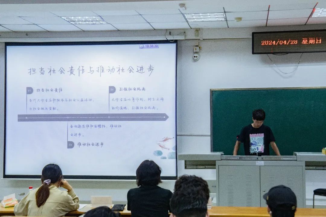4月28日晚,我院于第三教学楼A205举办第七届“悦学习,跃青春—百生讲坛”。22级辅导员汤春燕、第六届优秀主讲人古丽胡玛尔·马买提依沙、团委理论学习部负责人方小余作为嘉宾评委参与活动,2023-2024学年春季学期理研会全体学员担任观众评委。