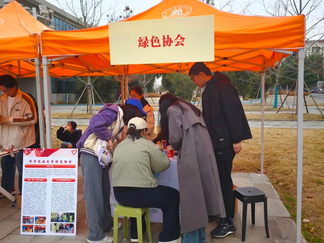 三月的华农校园玉兰初绽,大学生活动中心前也涌动着一抹清新绿意。3月1日,绿色协会宣教小组与项目部共同打造的公益摊位前人头攒动,一场沉浸式环保体验正悄然开启。