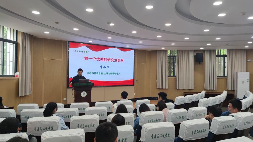 李小坤为研究生党员讲授党课(通讯员 何紫瑶 摄)