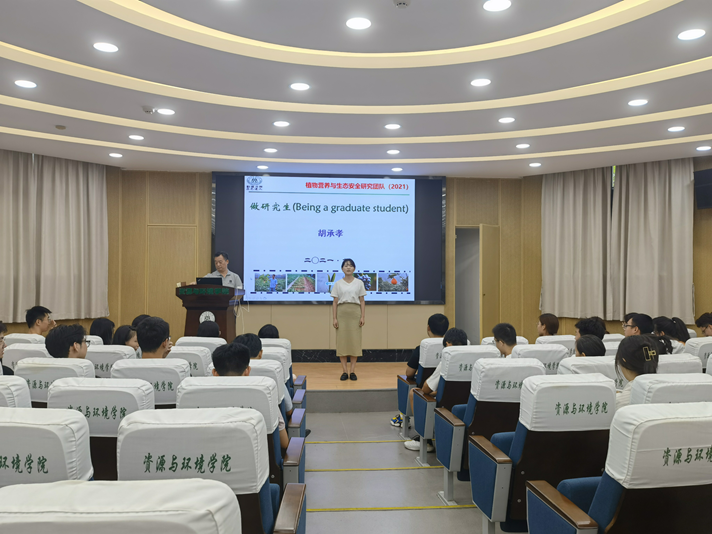 幸而,学校学院及课题组师生们的热情引领及对校园各种文化活动的体验,让我很快适应了这里的环境,也逐渐爱上这里。9月17日,我们植物营养与生态安全课题组开展课题组迎新会暨课题组组会,课题组负责人胡承孝老师的“做研究生”报告,成为课题组22位研究生新生的华农“第一课”。