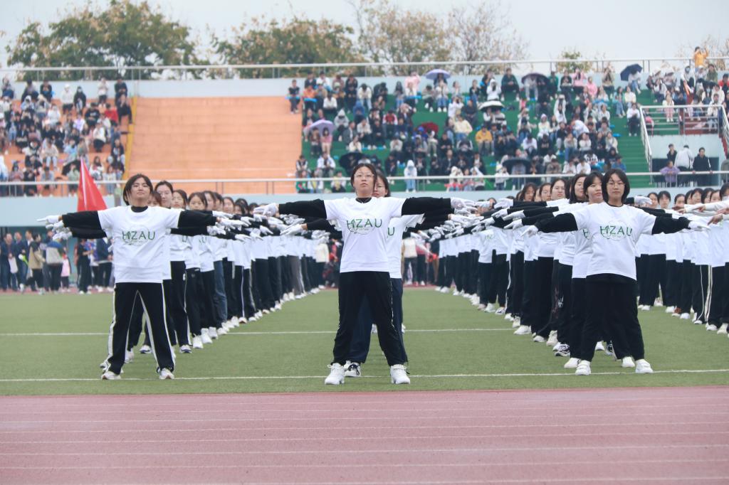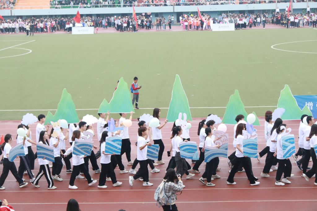 9时整,开幕式方阵代表正式入场。由四十一名党团学青工作人员和全体教职工组成的英国365集团方阵缓步走过主席台。“一心守绿水,全意护青山!赛场展青春,拼搏看资环!”同学们手中举着波浪形的展示板拼成湖水,巨大的绿色展示板代表着青山,欢声和笑语洋溢在他们的脸庞,嘹亮的口号响彻狮山云霄,表达了资环学子守护绿水蓝天的决心,更展现着华农学子朝气蓬勃的精神面貌。“‘一水护田将绿绕,两山排闼送青来。’王安石的《书湖阴先生壁》中的这句诗是此次运动会入场式的灵感来源。”入场式方阵负责人农资2002班的孙雨欣说到,“作为英国365集团的学生,我们要坚持做生态环保领域的领头雁,努力做守护绿水青山的工程师。我们坚信人不负青山,青山定不负人。”