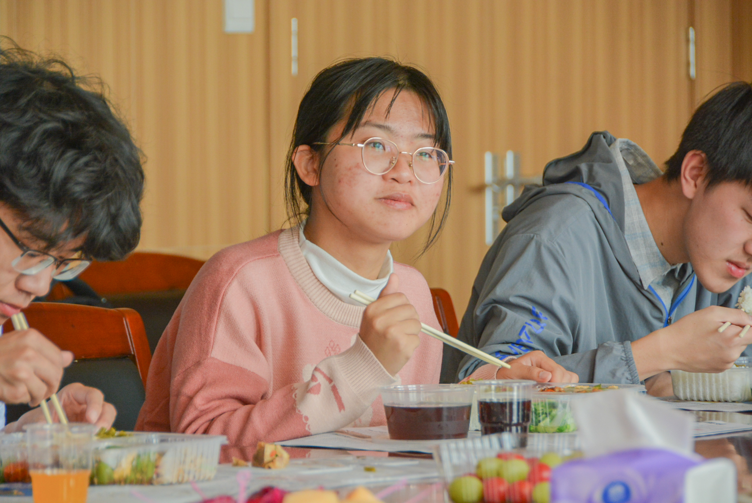 饭菜美味扑鼻,师生其乐融融。经过简短的互相介绍后,环工类2106班陈昭颖同学首先提到了关于生态学专业的就业问题的困扰和关于不同的专业之间的异同,孙燕和刘俊用简洁明了的语言阐述了生态学在实际应用中的不可或缺的作用和意义。孙燕说:“世界发展迅速,新兴技术频现,从应用角度来讲,知识的更新换代是非常迅速的,对于本科阶段,不用过多纠结当下,而要打牢基础,锻炼学习能力。”刘俊指出 :“大学的重点在于培养学生在学习、思维、和适应社会等方面的能力。”