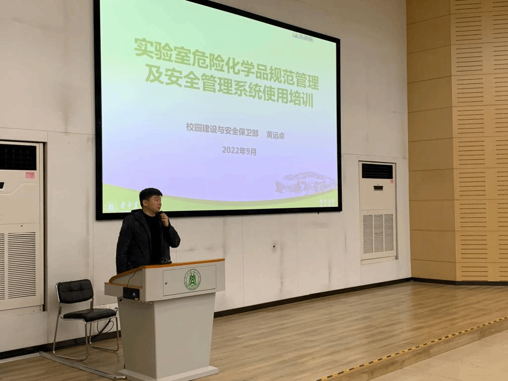 围绕消防安全,黄青松结合学校案例从学校火险情况介绍、火险处置经验教训、消防安全基本常识、日常火灾事故预防等四个方面,分析事故发生的原因和潜在隐患,强调消防安全工作的必要性和迫切性。黄远卓老师以“实验室危险化学品规范管理及安全管理系统使用培训”为题,以实验室安全检查项目为切入点,结合安全事故案例、实验室常见安全问题、危化品周期管理要求以及规范使用安全管理系统等四个方面向同学们做了详细介绍。