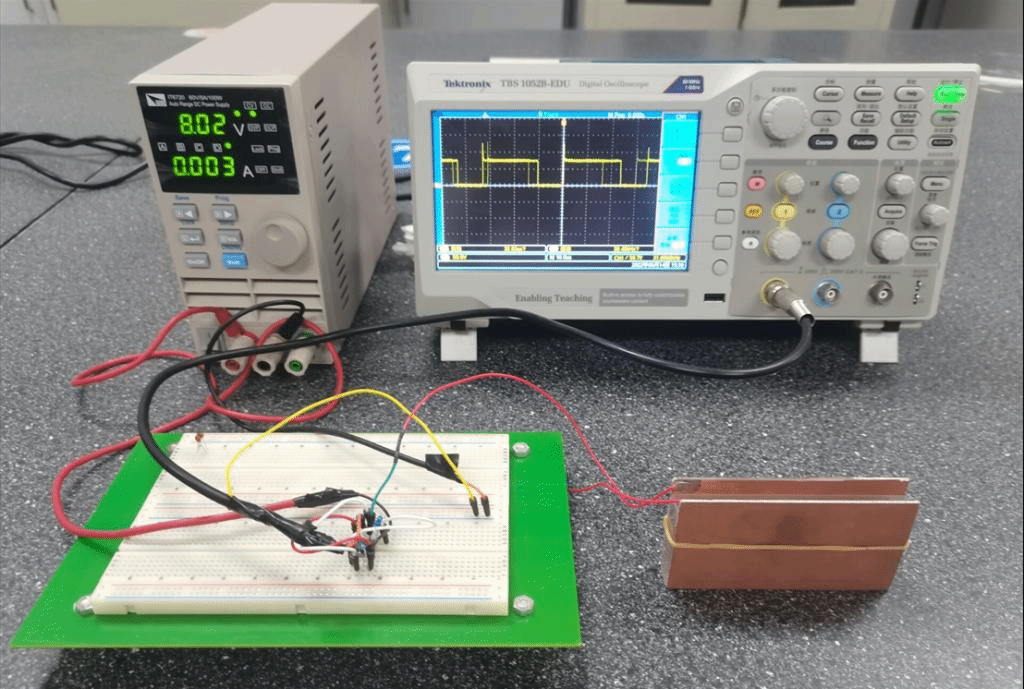 团队成员环工2002班肖廷健介绍,队伍能够获得全国一等奖,是大家的共同努力。“本次比赛我们团队选择的方向是利用电容法测定非电解质溶液浓度。实验原理是采用RC振荡电路将微小的电容变化转换为较显著的振荡周期变化。通过研究乙醇和水溶液,我们得出了电容器的方波周期与被测溶液的浓度有较好的线性关系。符合理论预期,能对介电常数差异显著二元电介质溶液实现较为准确的浓度测量。”