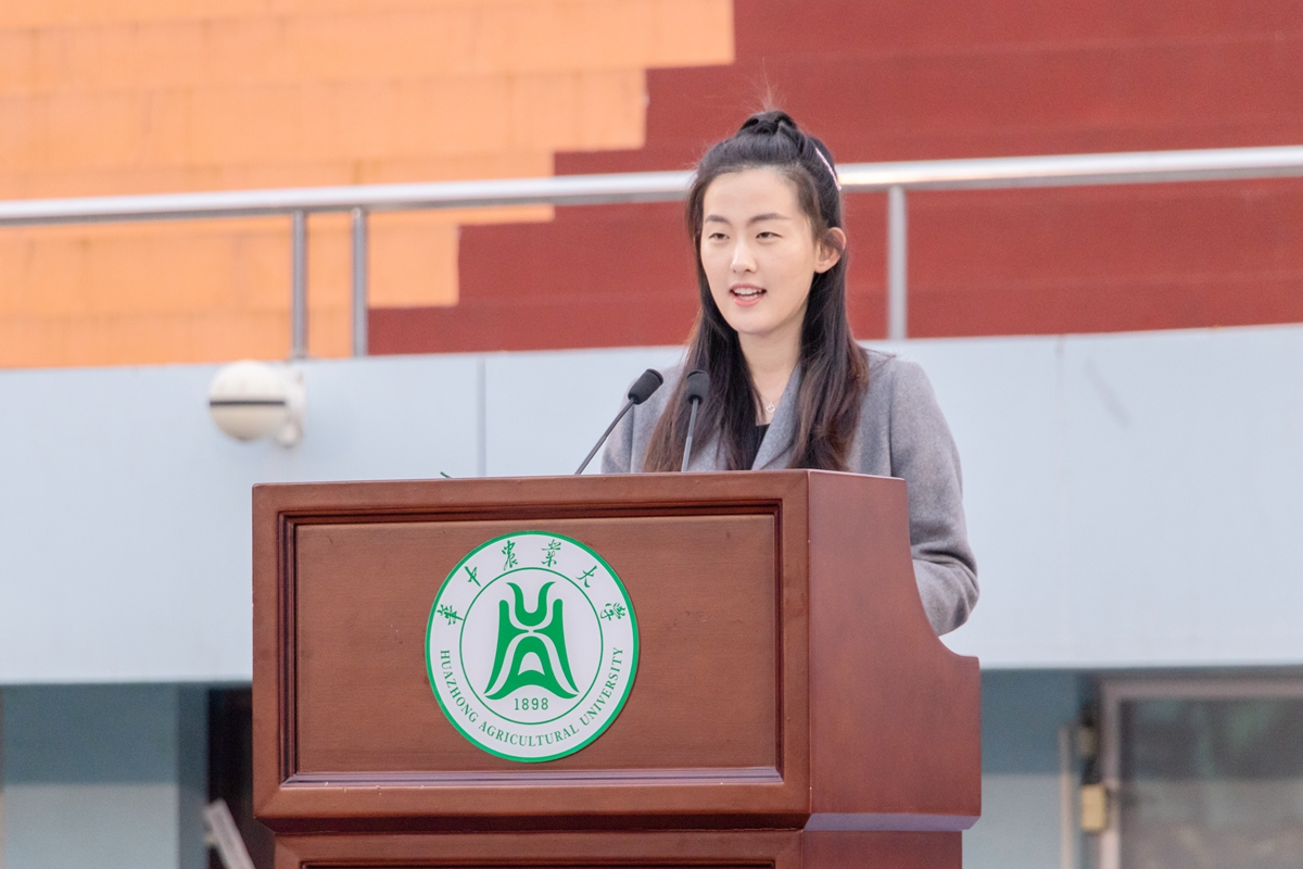 学院环境生态1901班冯晨回顾了过去极不平凡的一年,讲述了疫情期间她看到的“华农速度”和为之感动的“华农精神”,她说,如今熟悉的烟火气悄然回归,春天万物复苏的气息催促着同学们快马加鞭,奔向远方。她希望新学期在这“步步都是景,处处皆可为”的狮山下,立足当下,努力奋斗,在每一次探索、每一次奋斗中不断实现德智体美劳全面发展。展望未来,冯晨代表全体华农学子许下青春诺言:将以热血青春沿着党的二十大指引的方向奋勇前进,怀揣着炽热向上的心去学习、去生活、去追求,动如脱兔般奋力奔跑、奋起勃发、奋勇向前,立志成为有理想、敢担当、能吃苦、肯奋斗的新时代好青年。