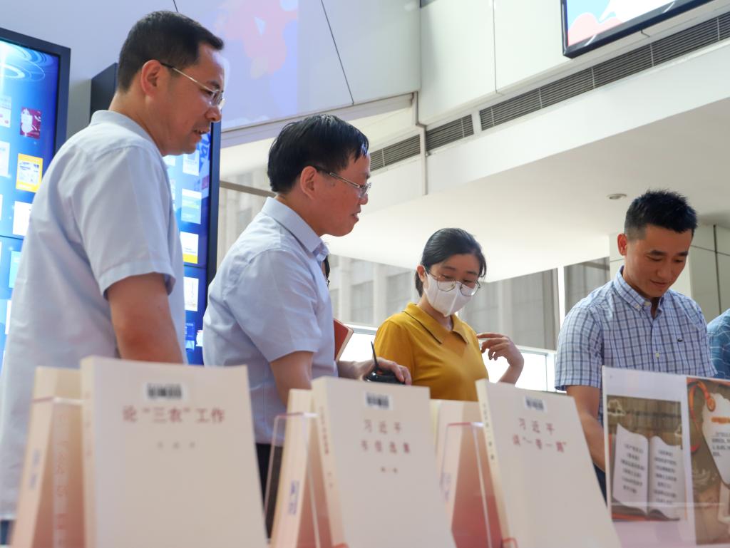 座谈会结束后,师生共同参观由图书馆举办的“学习贯彻习近平新时代中国特色社会主义思想”主题教育书展、《复兴文库》书展、《总书记的书单——跟着习近平总书记读经典》。“《复兴文库》这本书记录了中华民族的伟大复兴征程中的革命史、奋斗史、改革史和复兴史,作为毕业生党员,在未来我们更应该不忘初心、牢记使命,奋力书写中华民族伟大复兴中的青春篇章。”农资1903班陈炳宇感不禁感慨。
