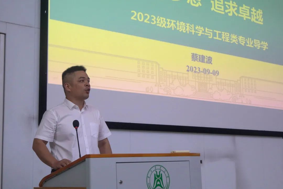 随后各位老师介绍本专业的相关背景、知识、实力和未来发展方向。李小坤从世界粮食安全、气候变暖等全球视角引入,讲述农业资源与环境专业“既要粮食安全,又要绿水青山”的专业目标;赵小虎比较环境生态工程与生态学两个专业的异同,通过举例实际研究情况来介绍专业概况;张晓明强调了环境生态工程(水土保持方向)对于国家的重要性,表示“保持水土就是保证了我们将来发展的基础”;蔡建波向同学们解释了“环境工程重在实践,环境科学重在基础”,细数环境工程专业优秀学长学姐以激发同学们的学习热情;刘诗诗着重介绍了地理信息系统专业的师资力量,并希望同学们“沉潜读书、思考人生,度过充实、精彩的四年”。