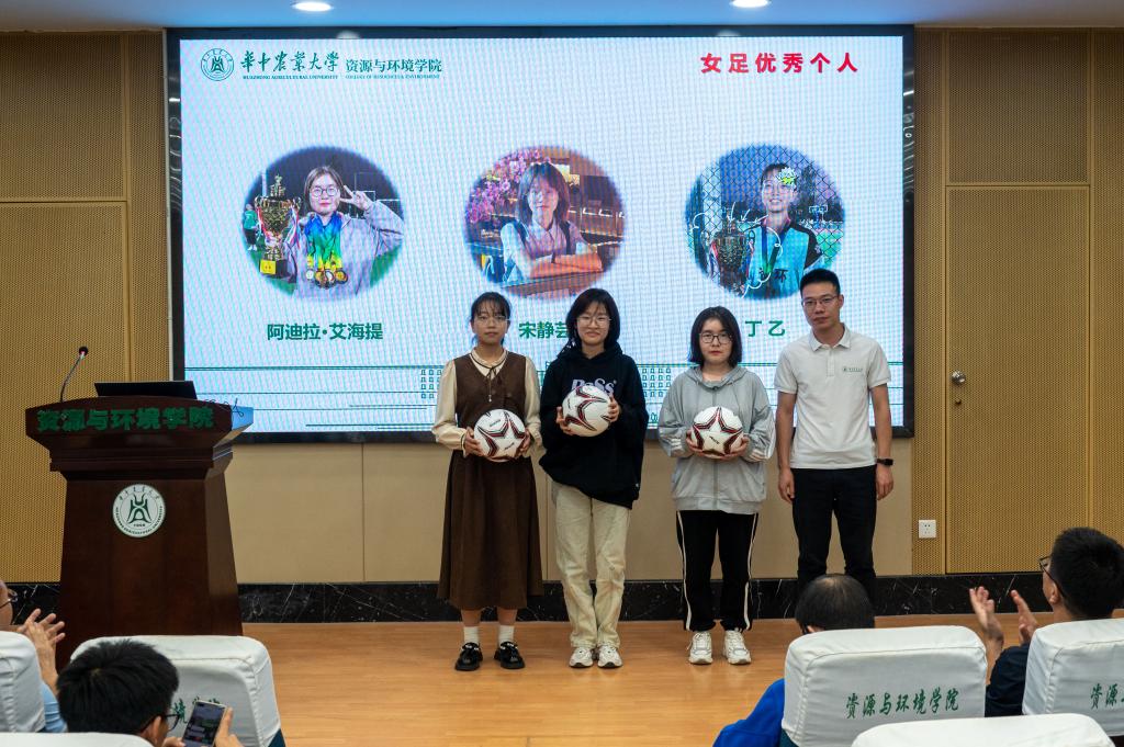 胡志宏老师为女足优秀个人颁奖