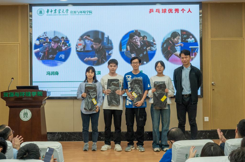 向荣彪老师为本科生乒乓球队颁奖