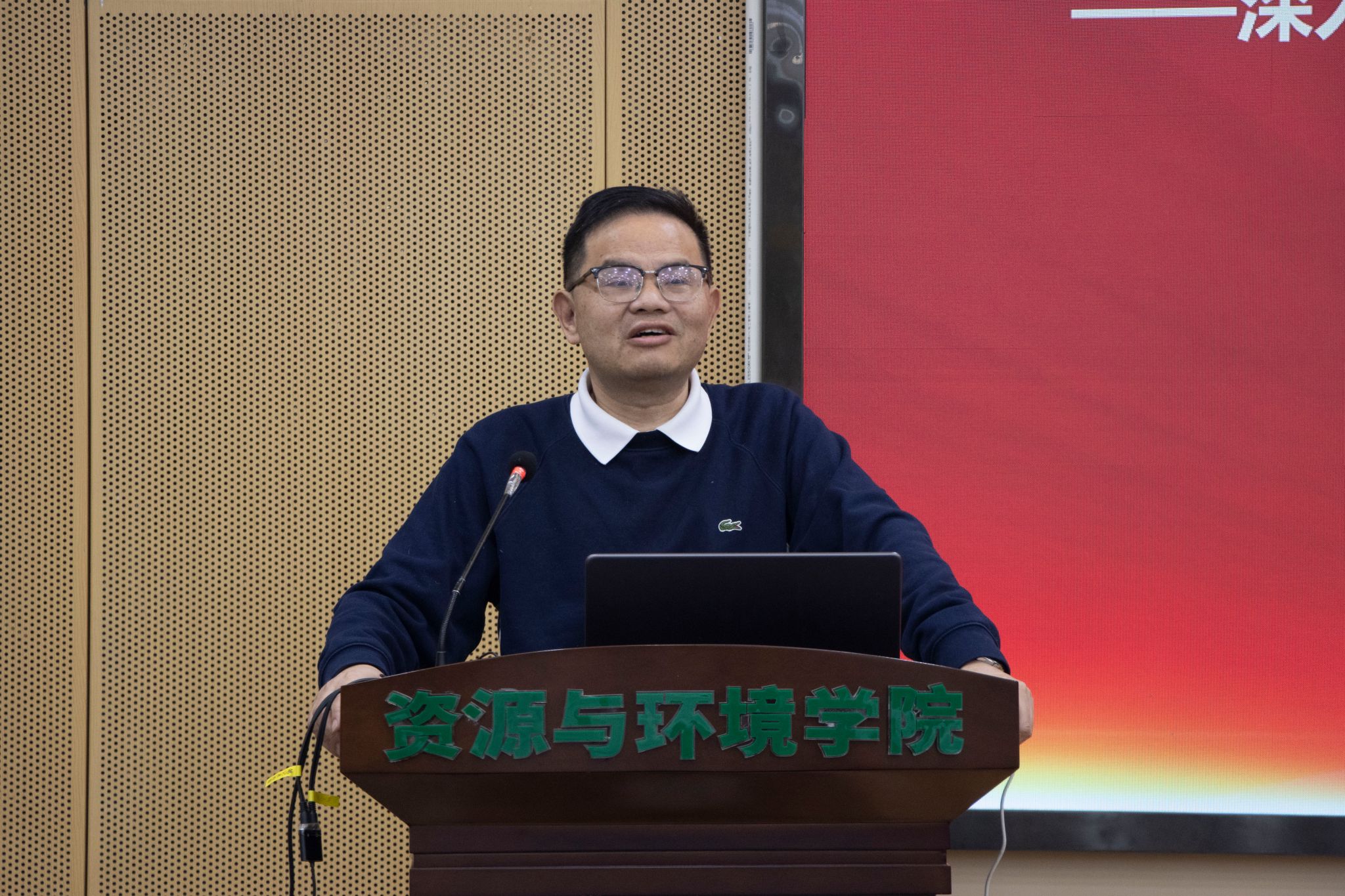 冯永平系统介绍了学校第十一次党代会报告的筹备工作及主要内容,并以历届党代会报告中关于资源环境学科的发展论述为切入点,深入解读了本次党代会报告的精神要义。