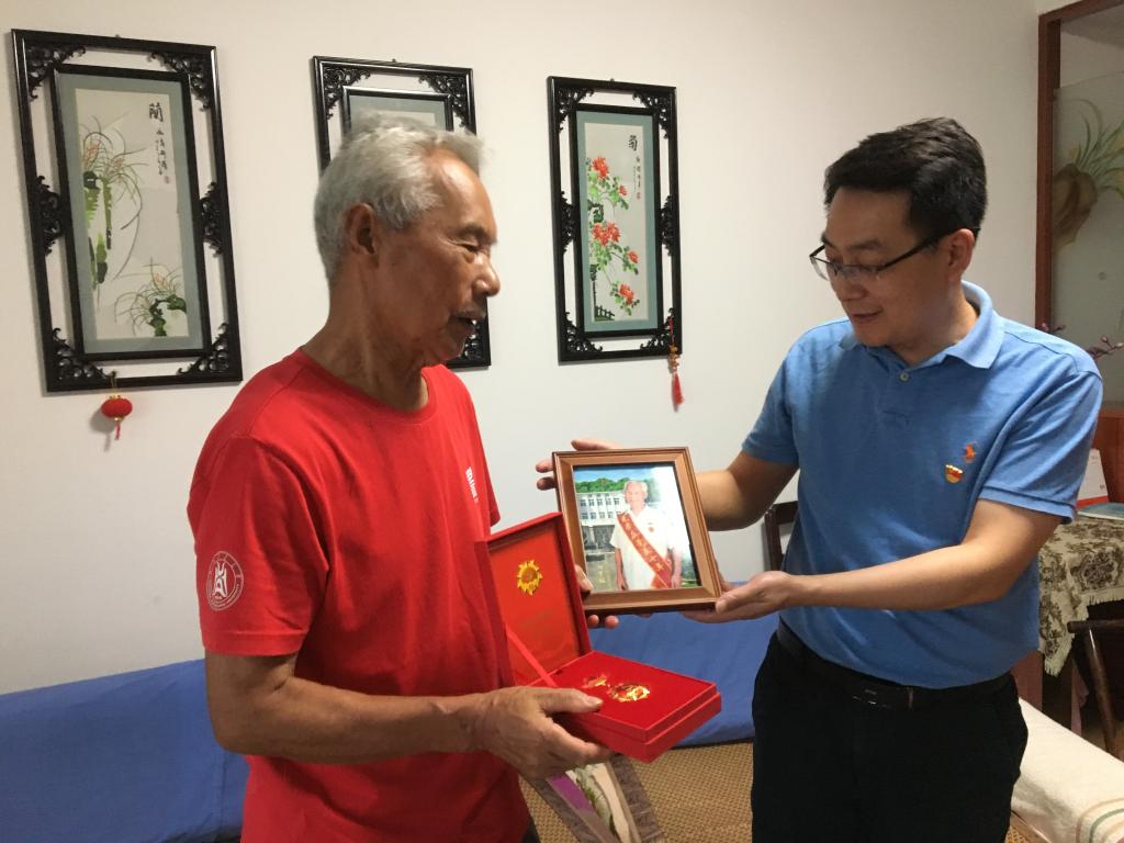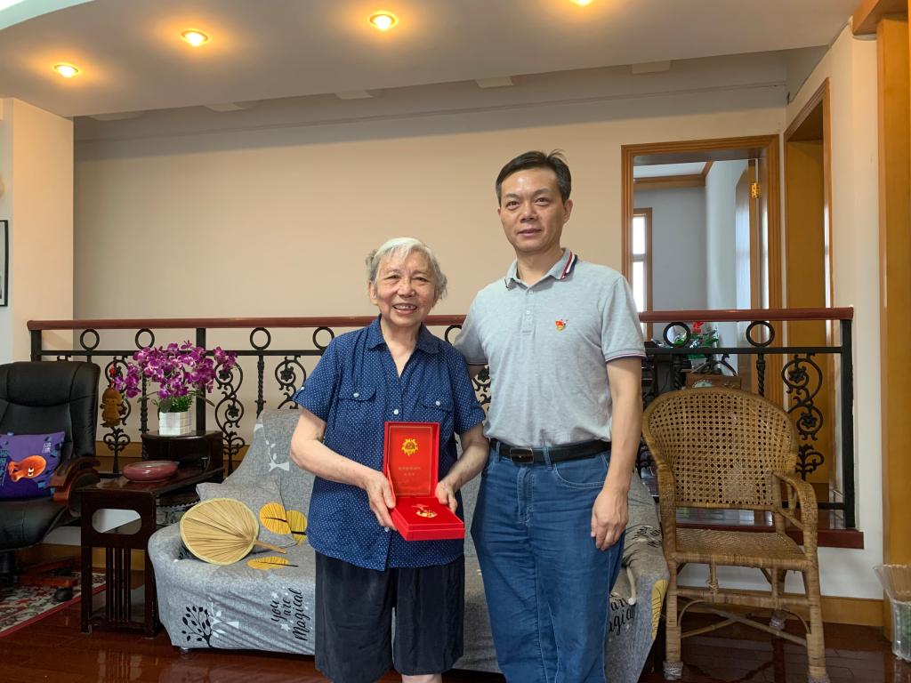 学院院长谭文峰来到徐凤琳家中,颁发了“光荣在党五十年”纪念章,代表学院向她表示衷心祝福和感谢。