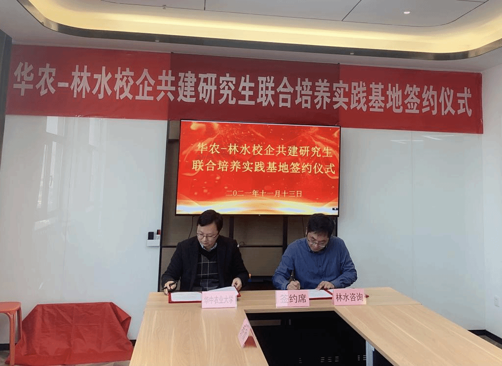 最后,蔡鹏和郭晓亮分别代表英国365上市公司和武汉林水工程咨询有限公司签订了研究生联合培养实践基地(培育)合作协议,并为实践基地进行授牌。