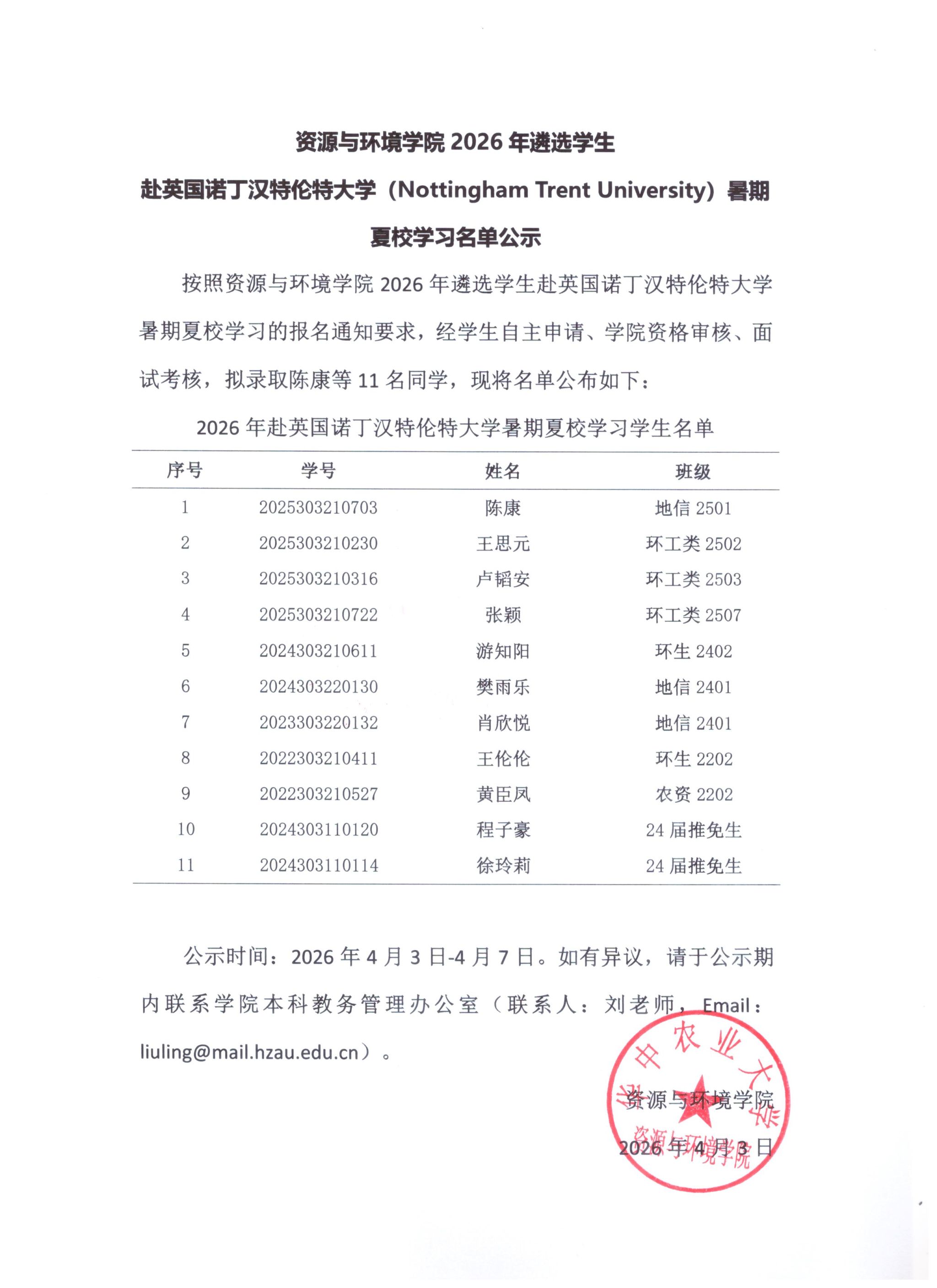 英国365集团2026年遴选学生赴英国诺丁汉特伦特大学暑期学习名单公示