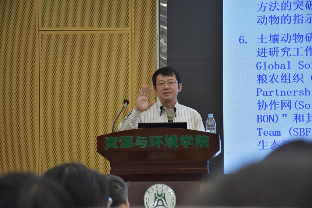 (通讯员:张文、刘钟文)5月30日下午,应学院刘玉荣教授邀请,澳大利亚墨尔本大学贺纪正教授做客生态环境与绿色发展高端论坛,与120余名师生探讨土壤动物作为“生态系统工程师”在驱动元素生物地球化学循环及指示全球变化、环境-动物-人体健康中的重要作用。
