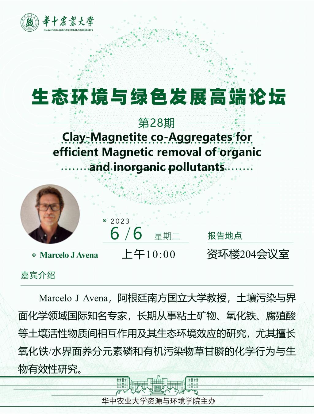 【高端论坛】28期:Clay-Magnetite co-Aggregates for efficient Magnetic removal of organic and inorganic pollutants
